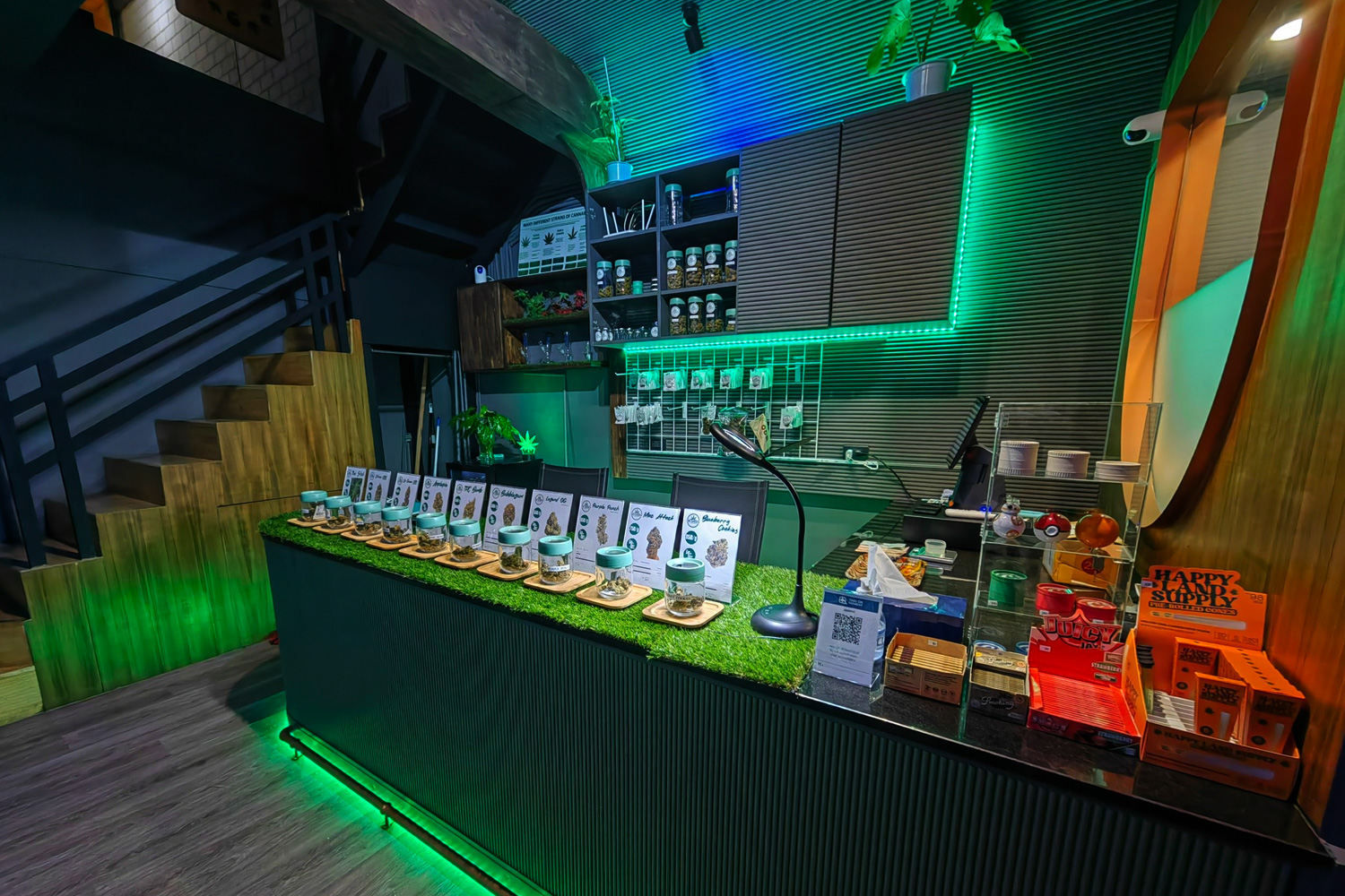 実際に入ってみると、商品を買って終わりというより、スタッフと会話しながらゆっくり選べる距離感がありました。レビューでも「スタッフが素晴らしい」「オーナーがチルでリラックスできる」「対応してくれたスタッフに感謝したい」といったコメントが複数見られ、接客体験に満足している人が多い印象です。 公式SNSでも“ルーフトップ付きのスモーカーズクラブ”“4フロアのウィードラウンジ”として紹介されており、滞在型の店舗として設計されていることがうかがえます。