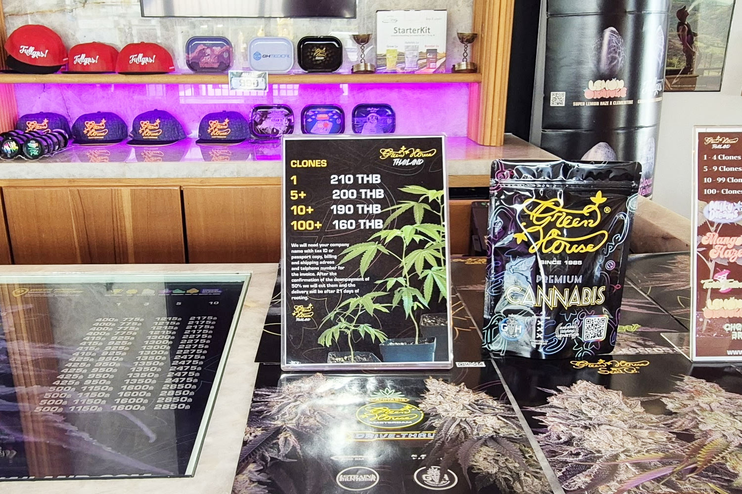 ヌアンチャンにあるGreen Houseは来場者でもガラス越しに栽培している大麻が見えるブースがある。店内で売られているクローンもブース内で栽培されており、“ブランドとしての完成度”を現場で体感できる環境が整っている。大麻栽培に興味がある人にとっては学びの多い場所でもある。