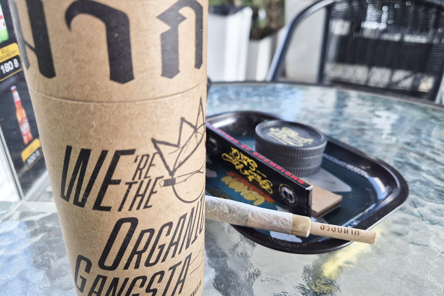 パケから塊のking juiceを取り出して、手をベタベタさせながら砕いて、自分で作った竹フィルターを使って綺麗に1本巻いて完成。この後、大麻農家の友達と一緒に一服したけど、2人ともking juice特有のサティバ効果でずっとテンション高く大麻の未来について語ってたら、気がついたら夜になってた。