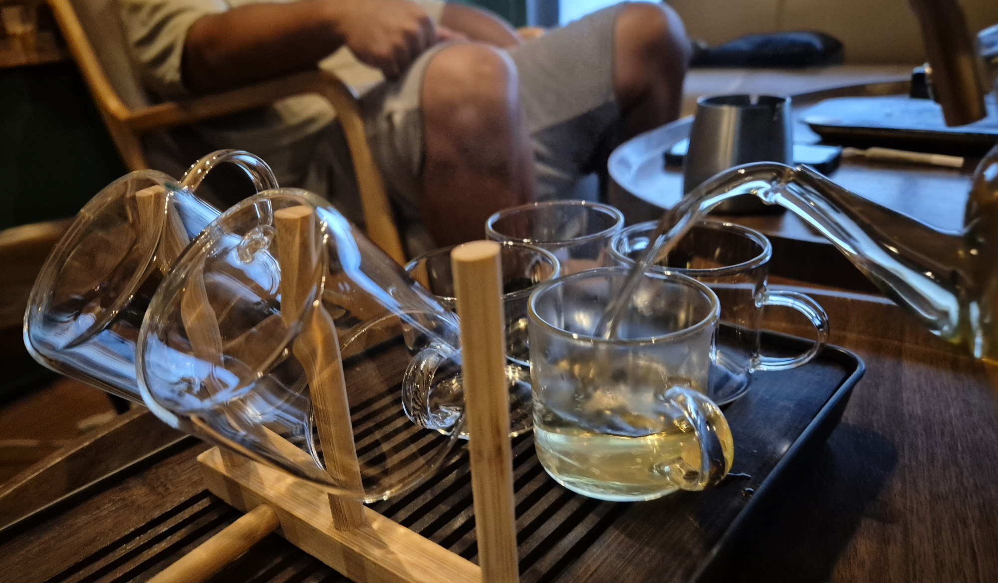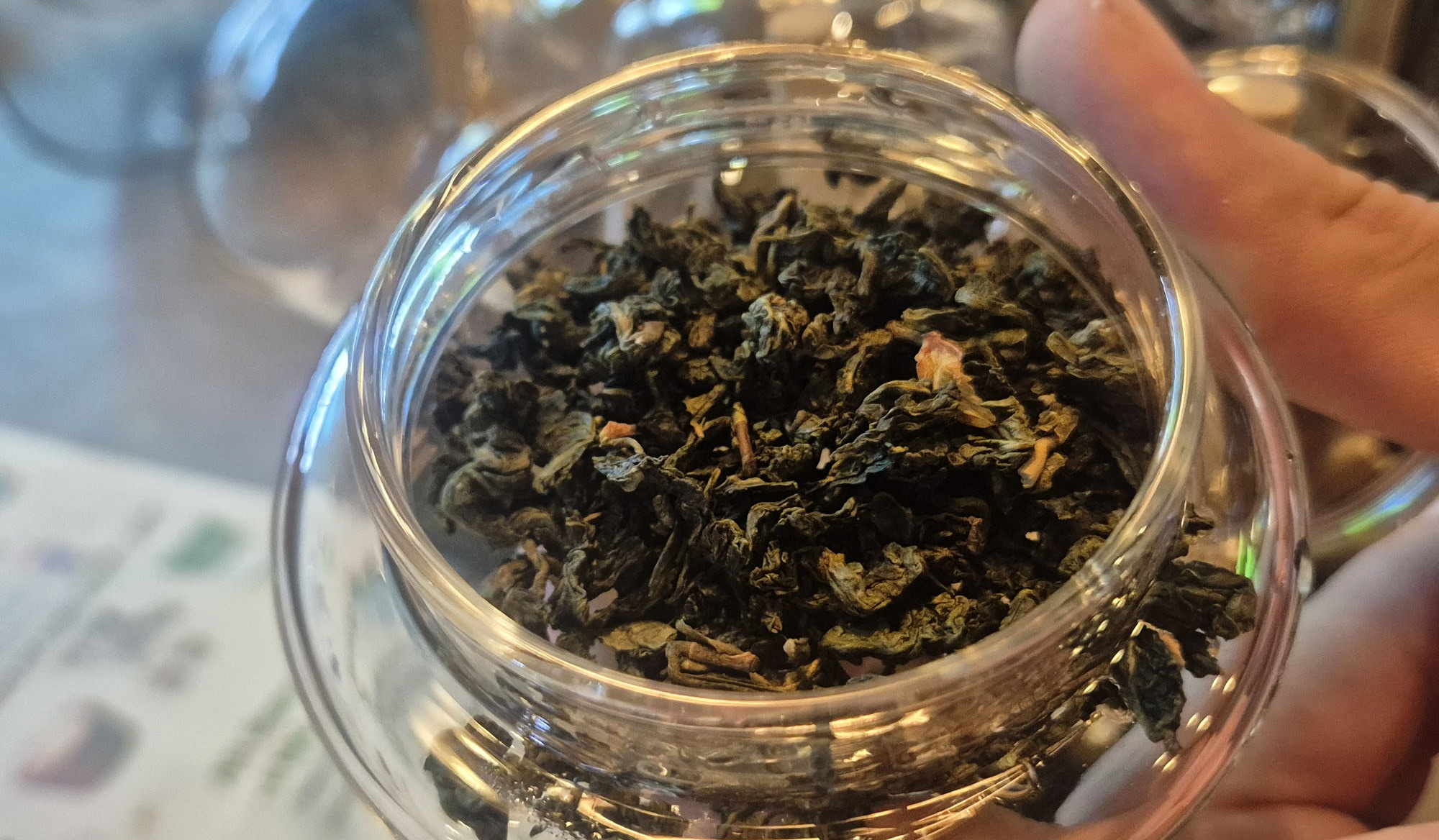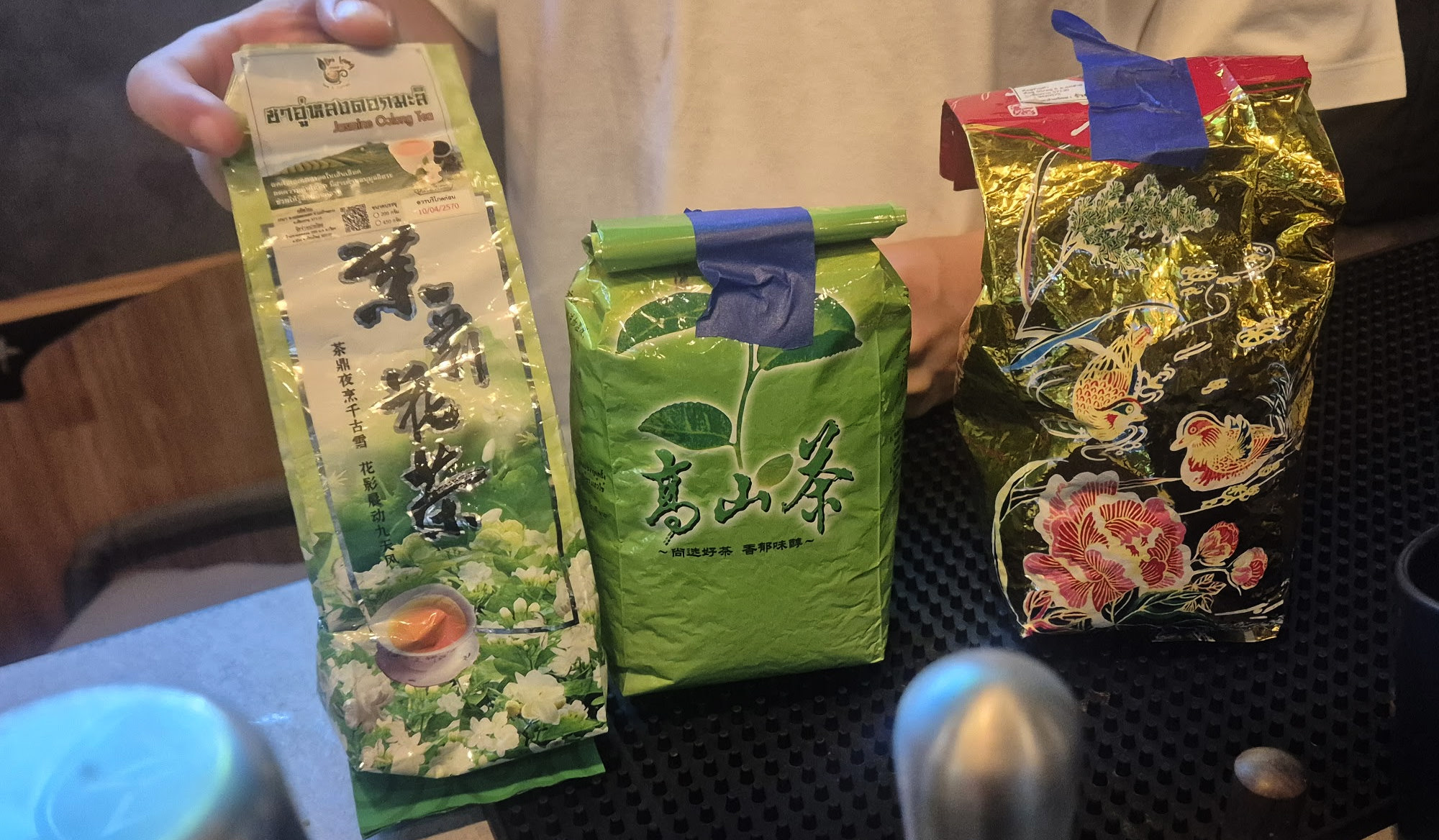 今回は「ジャスミン茶(茉莉花茶 / Jasmine Chiang Tea)」をオーダーしました。このジャスミン茶)はタイ北部・チェンライ県の山岳地帯(ドイメーサロン周辺)で作られたジャスミン烏龍茶で、ドイメーサロンは中国系コミュニティが多く、本場の製茶技術を持つ職人が多いことで知られ、台湾烏龍に近い品質の香り高い茶葉が特徴です。