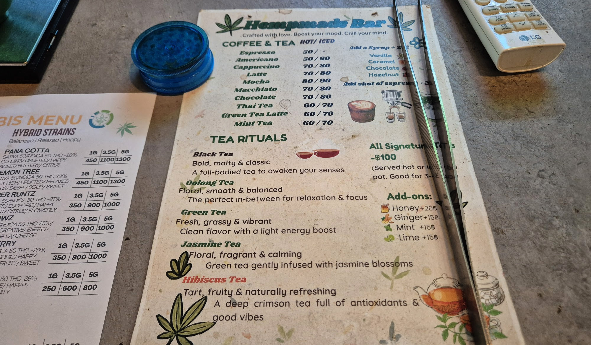 バンコク・トンローの静かな路地にひっそりと店を構える「hempmade」は“心地よさ”を大事にした、お茶好きの大麻愛好家好みの大麻薬局です。Hepemadeは大麻だけでなく、店内で淹れてくれるお茶が驚くほど美味しく、初めて訪れたときに「大麻薬局で、こんな丁寧な一杯が出てくるのか」と正直びっくりしました。
