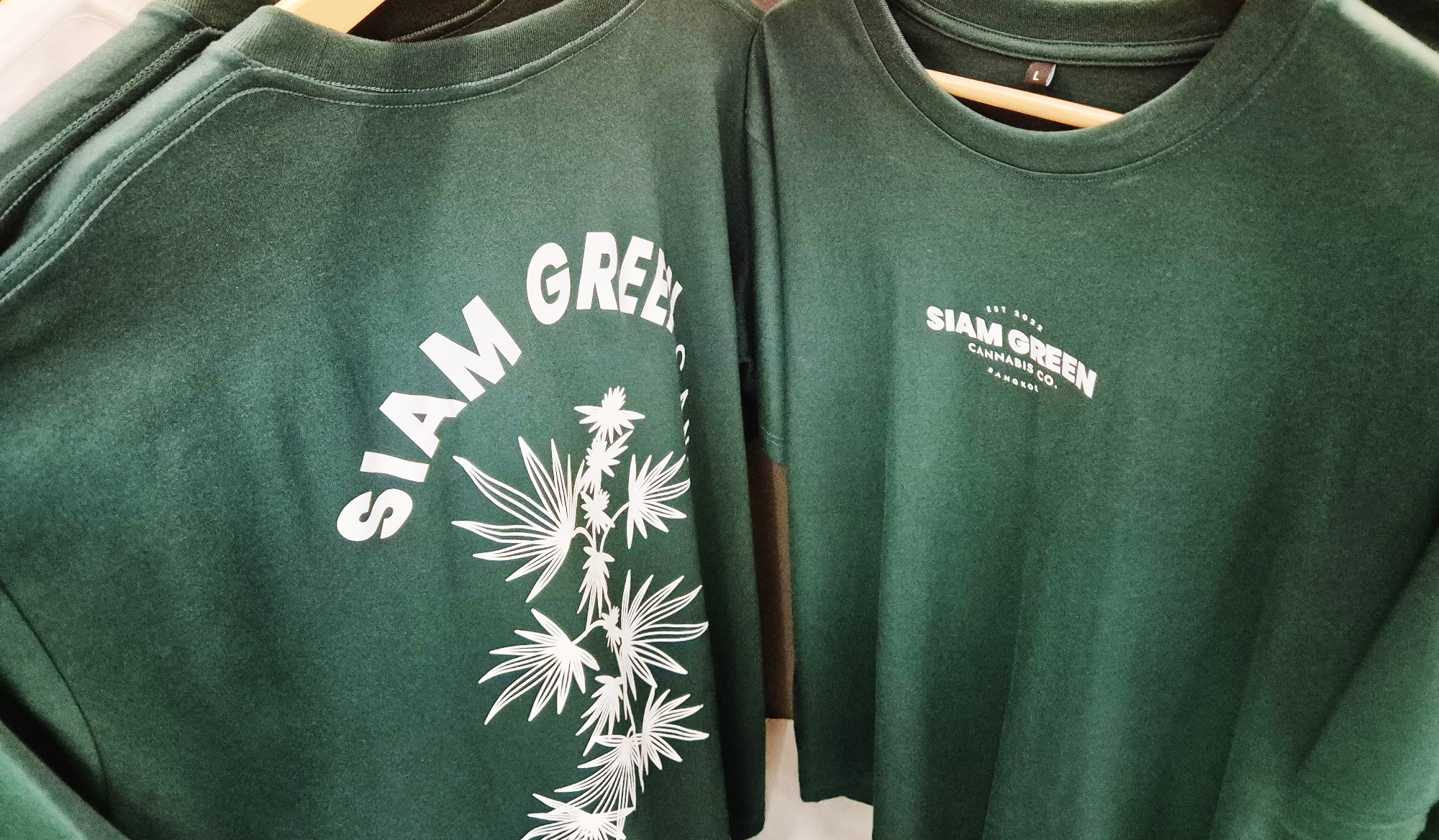 アパレルラインの中でも、こちらのTシャツとリブタンクは特に人気が高いアイテムです。デザインはどれもシンプルの中にも、おしゃれに大麻ブランド感を出している仕上がりになっています。実際に手に取ってみると、生地は厚すぎず薄すぎないバランスで、タイの気候でも着やすいのが印象的でした。