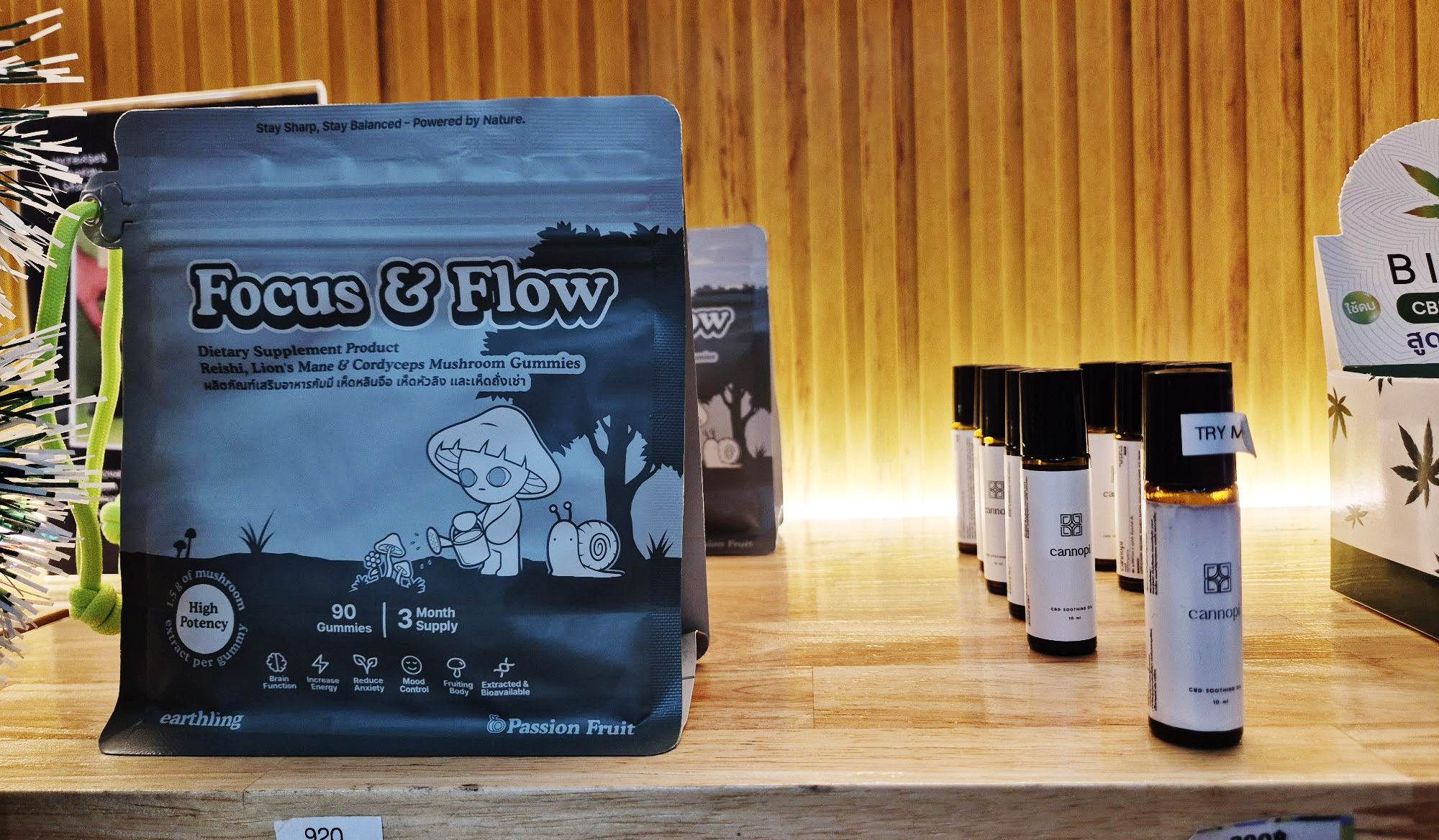 タイの中心街のプロンポン駅の真下にある、タイ国内で5店舗を展開する「Siam Green Cannabis」はオーナーさん自身がテンカンに苦しんだ経験を持っており、その際に大麻(特にCBD)に救われた経験を持っており、自身の経験から医療として大麻を必要としてる人に正しいプロダクトを提供できるように様々な大麻以外のタイだから購入できるユニークなプロダクトをたくさん置いています。
