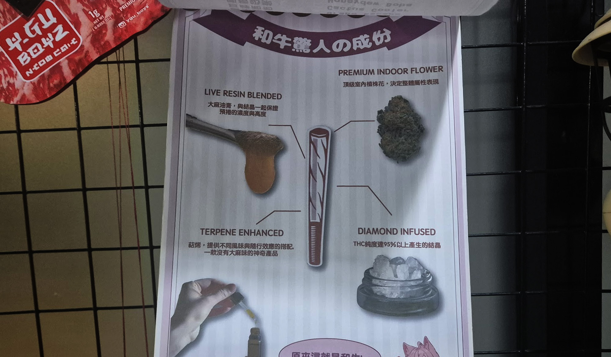 バンコク・エカマイの落ち着いた路地に佇む「寶貝花店 BABY BLUNT」は台湾人オーナーが営む大麻ディスペンサリーです。彼らとは2年くらい付き合いがあって、彼らはバンコクで開催されてる大麻イベントのほとんどでブースを出していて、彼らの仲間たちが作ってる「和牛」と書かれた肉のパッケージに入った超高THCジョイントプロダクトは高THCを求めてる大麻愛好家にはオススメのプロダクトです。