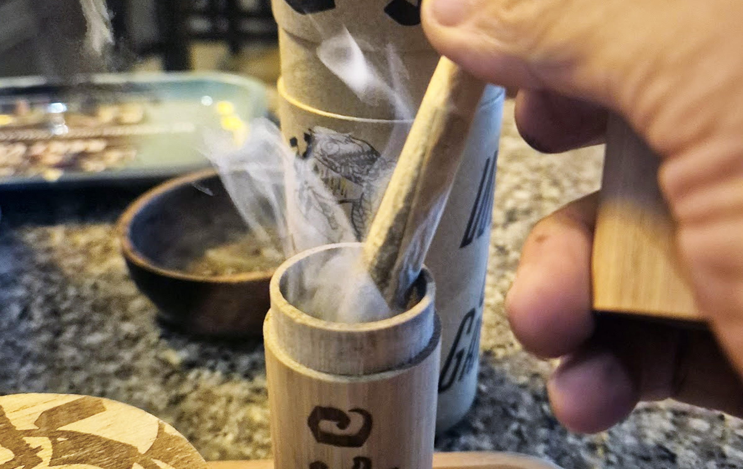 ジョイントを1本、1回で吸い切る人は実はそれほど多くありません。多くの場合は数口吸って終わり、そのまま燃えた状態で灰皿に置いてしまいがちです。ただ、この状態だと空気中の酸素に触れ続けるため、吸っていない間もジョイントは無駄に燃え続けてしまいます。そこで役立つのが、密封できる竹筒です。火がついたままのジョイントをそのまま竹筒に入れると、酸素が遮断されるため自然に火が消えます。これにより大麻を無駄に燃やすことなく、風味や量をしっかり保つことができます。