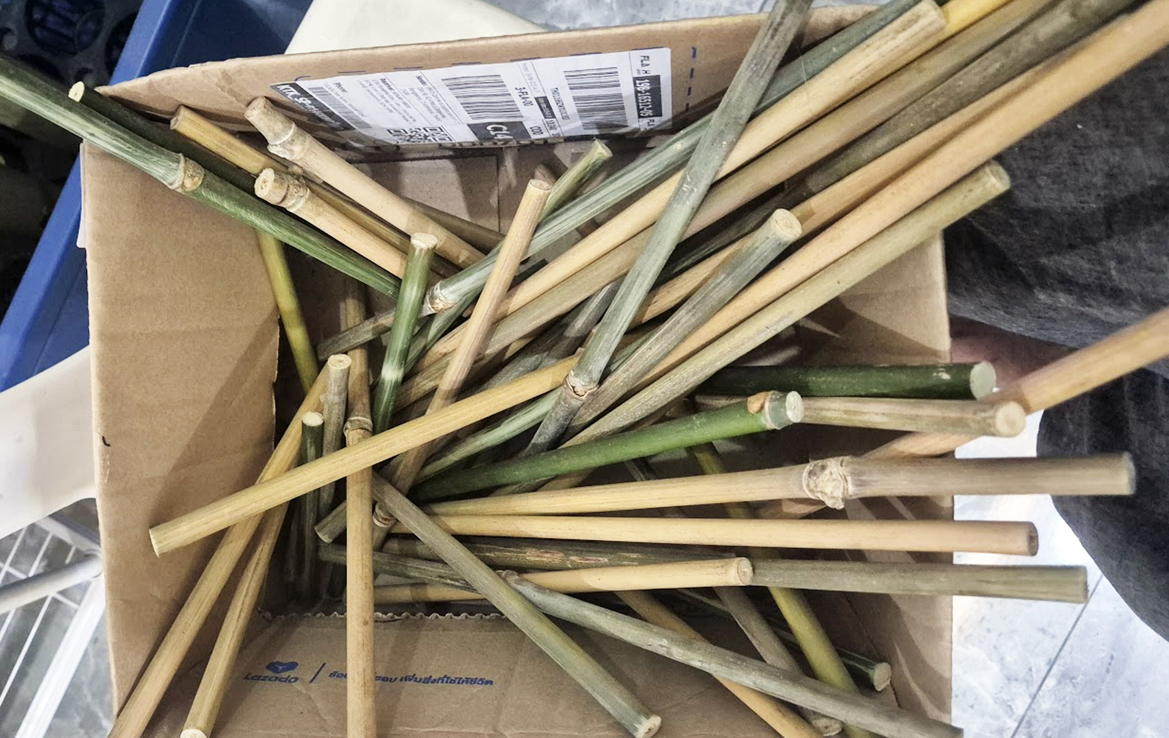 竹フィルターに使っている竹はハイキングコースとして人が入る山の中に自生している竹を実際に伐採して使っています。竹の扱い方については、パタヤで出会ったロシア人の友人から多くを学びました。彼は伐採のタイミング、乾燥のさせ方、内部の処理、フィルターとして機能させるまでの工程を一つひとつ丁寧に教えてくれた先生です。単に形を真似るのではなく、「なぜそうするのか」という理由まで含めて共有してくれたのが印象に残っています。彼は現在ロシアに帰国していますが、帰国前に竹フィルターの構造を一緒に見直し、改良を重ねました。そして「この竹フィルターをタイで引き継いでほしい」という約束のもとに完成したのが、アロイマークの竹フィルターです。