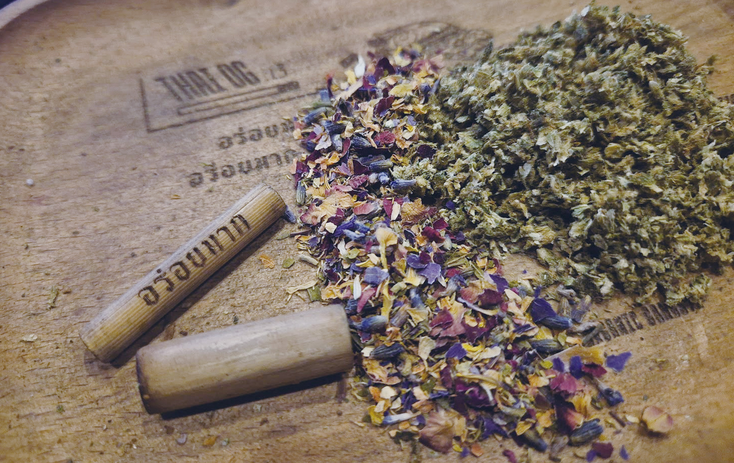 さらに、竹製喫煙器具で使っている竹も山に探しに行き、全てハンドメイドで作っています。竹には自然素材ならではの“やわらかい香り”と“冷却効果”があると言われており、煙の刺激を抑えながら大麻本来の草本の風味を引き立ててくれます。これは金属やプラスチックでは得られない、自然の吸い心地だと感じています。現在はバンコク・チェンマイ・プーケットの大麻薬局に加え、ニューヨーク、ロンドン、台湾のセレクトショップでも取り扱われており、“エコで美しい喫煙器具”として海外でも評価されています。一部のブランドとはコラボで商品を数量限定で開発しています。