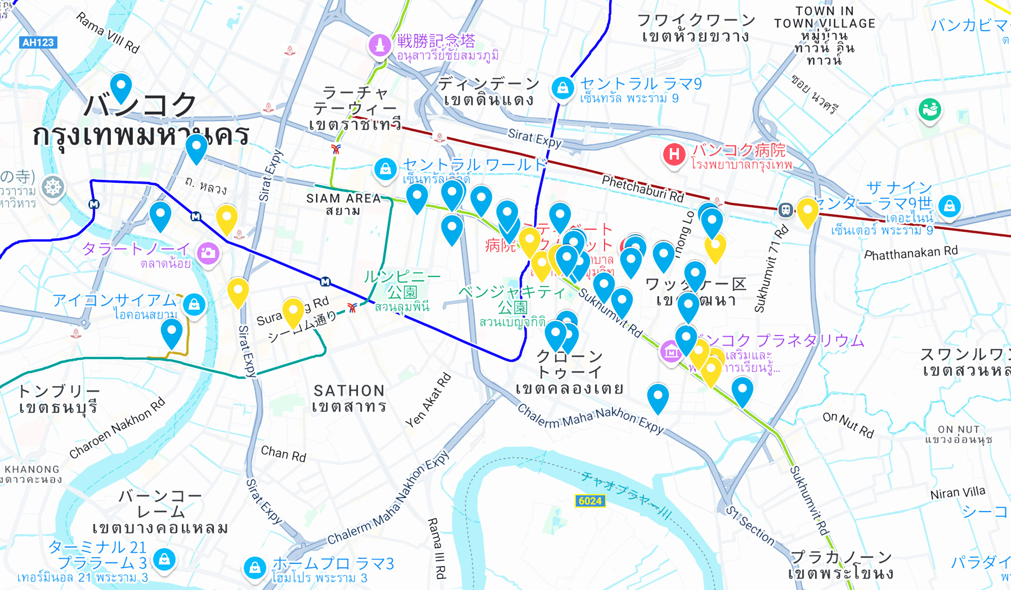 元有機大麻農家であり現在は大麻盆栽家としてオーガニック栽培を続ける自分が実際に訪れて「ここは本当におすすめできる」と感じたディスペンサリーを、🟡とても良い(黄色)/🔵良い(青)の2色で評価し、LINE登録者限定でGoogle Map上で閲覧できる「タイのおすすめディスペンサリーマップ」として公開しています。※随時更新しています